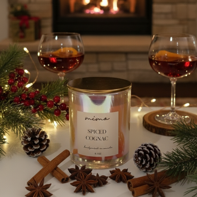 A rich, sophisticated blend inspired by Angel Share by Kilian. Warm cognac meets spiced tonka and cinnamon, layered with smooth oak, praline, vanilla, and sandalwood for a deeply sensual, comforting finish. Infused with orange essence oil this fragrance brings a refined warmth to any space.